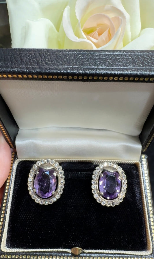 Amethyst & Rose Cut Diamond Earrings in 18K White Gold