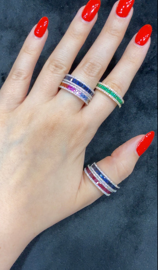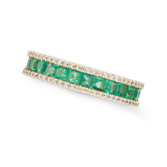 18k gold Emerald & diamond half eternity ring