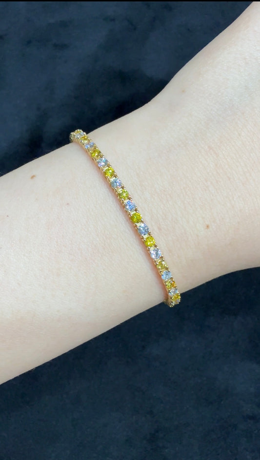 18k gold Yellow & white diamond tennis bracelet