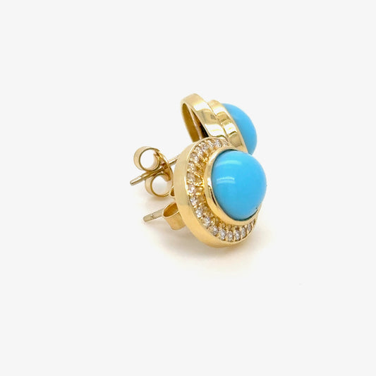 18k Gold Turquoise & diamond Earrings