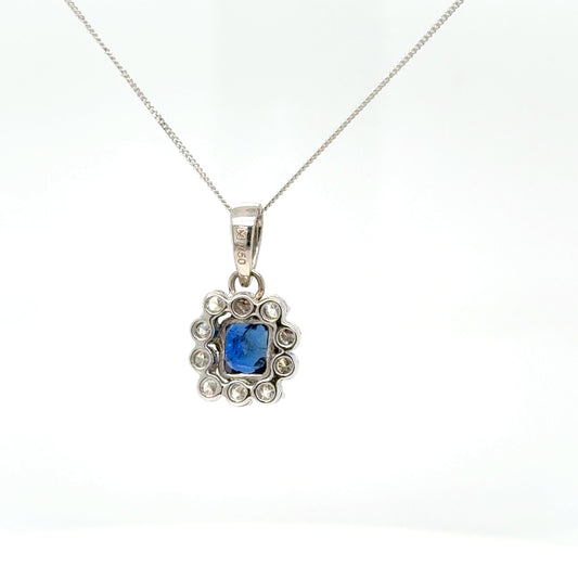 18K Gold Sapphire & Diamond Pendant Necklace