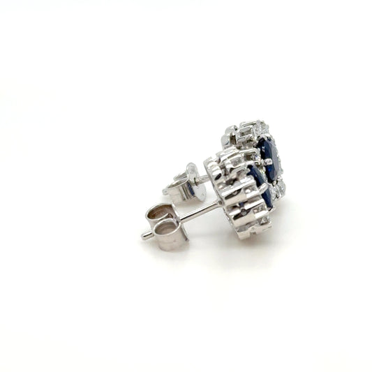 18K Gold Royal Blue Unheated Sapphire & Diamond Cushion Cut Earrings