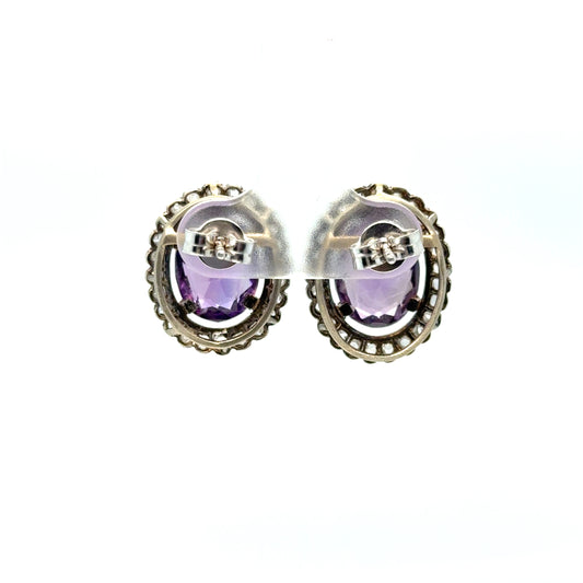 18K Gold Amethyst & Diamond Earrings
