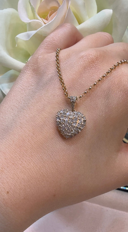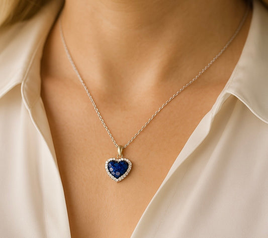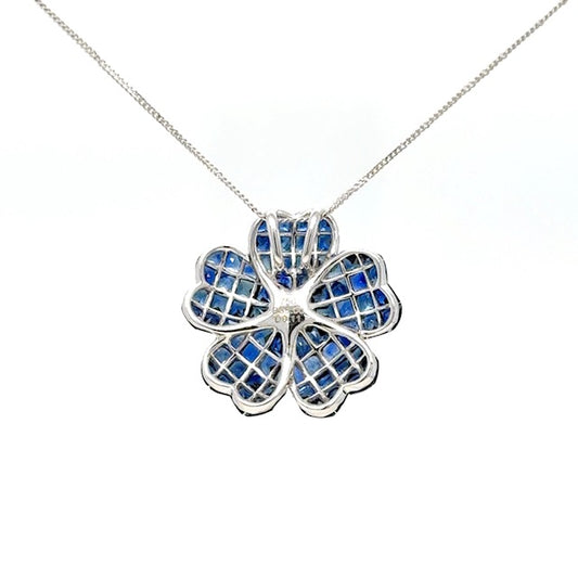 18k gold Heart shaped invisible setting sapphire & diamond Pendant Necklace
