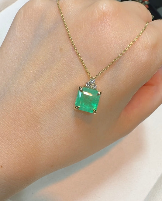 9K Gold 2.42ct. Colombian Emerald Pendant Necklace