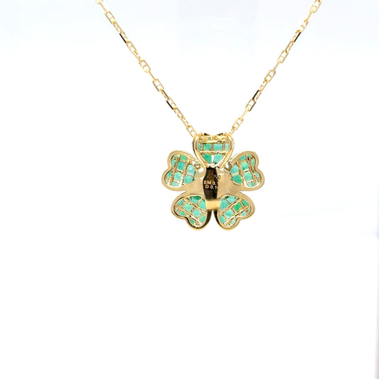 18k gold Invisible set Emerald & diamond flower pendant necklace