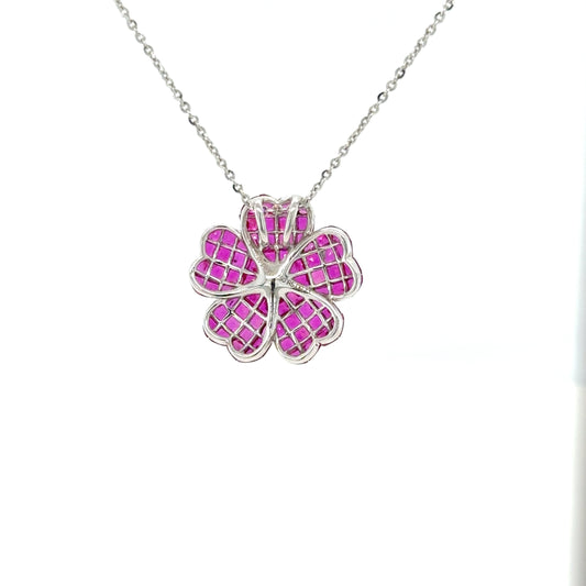 18k rose gold Heart shaped invisible set Ruby & diamond pendant necklace