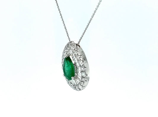 Pear Shape Emerald & Diamond Cluster Necklace
