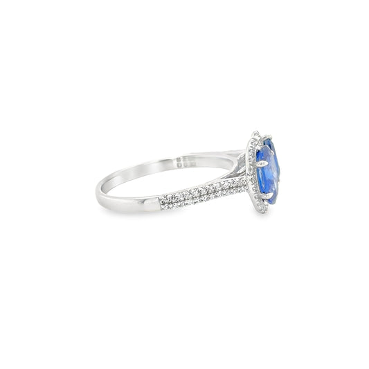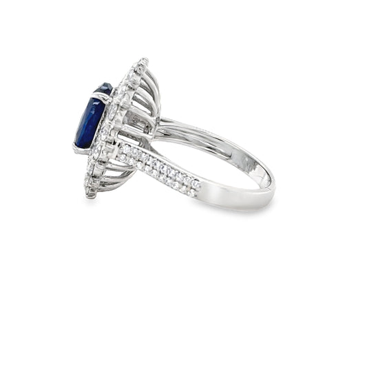 18k gold 3.95ct Royal Blue Oval Ceylon Sapphire & diamond Cluster Ring