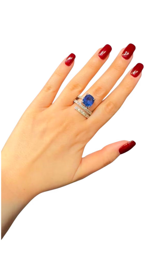 4.78 Ct Ceylon Sapphire & diamond Spiral ring