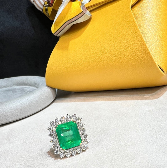 7.98ct. Natural Colombian Emerald cluster ring