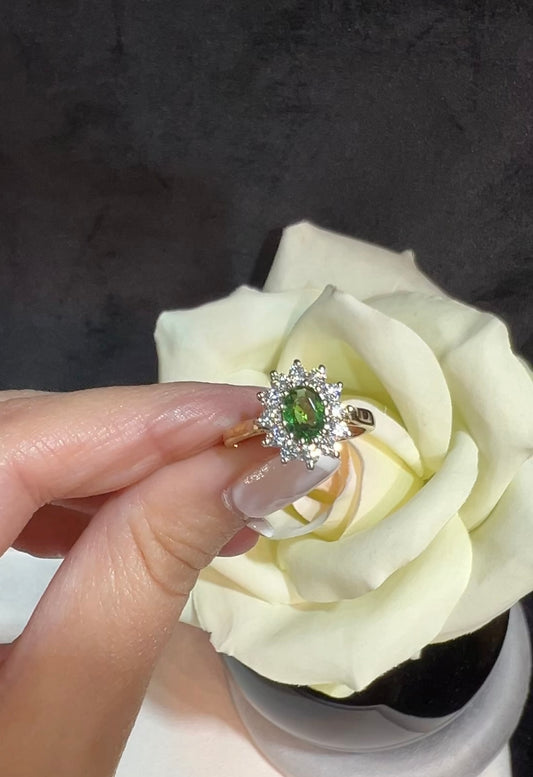 Tsavorite and Diamond gold Ring
