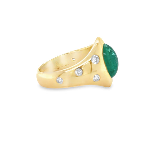 3.42 Carats Oval Cabochon Emerald & Diamond Ring
