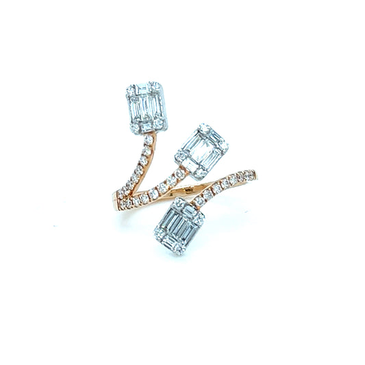 3 head rose gold cluster diamond ring