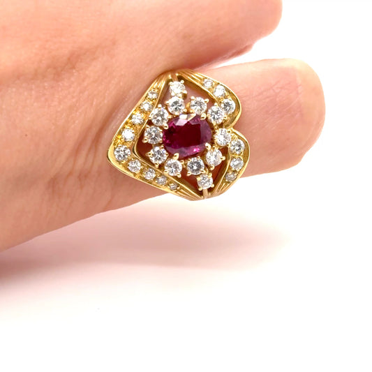 Cushion cut ruby & diamond cluster ring