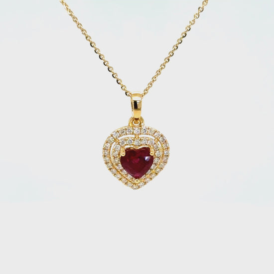 1.05 Carat Ruby & Diamond Heart Necklace 18K Yellow Gold