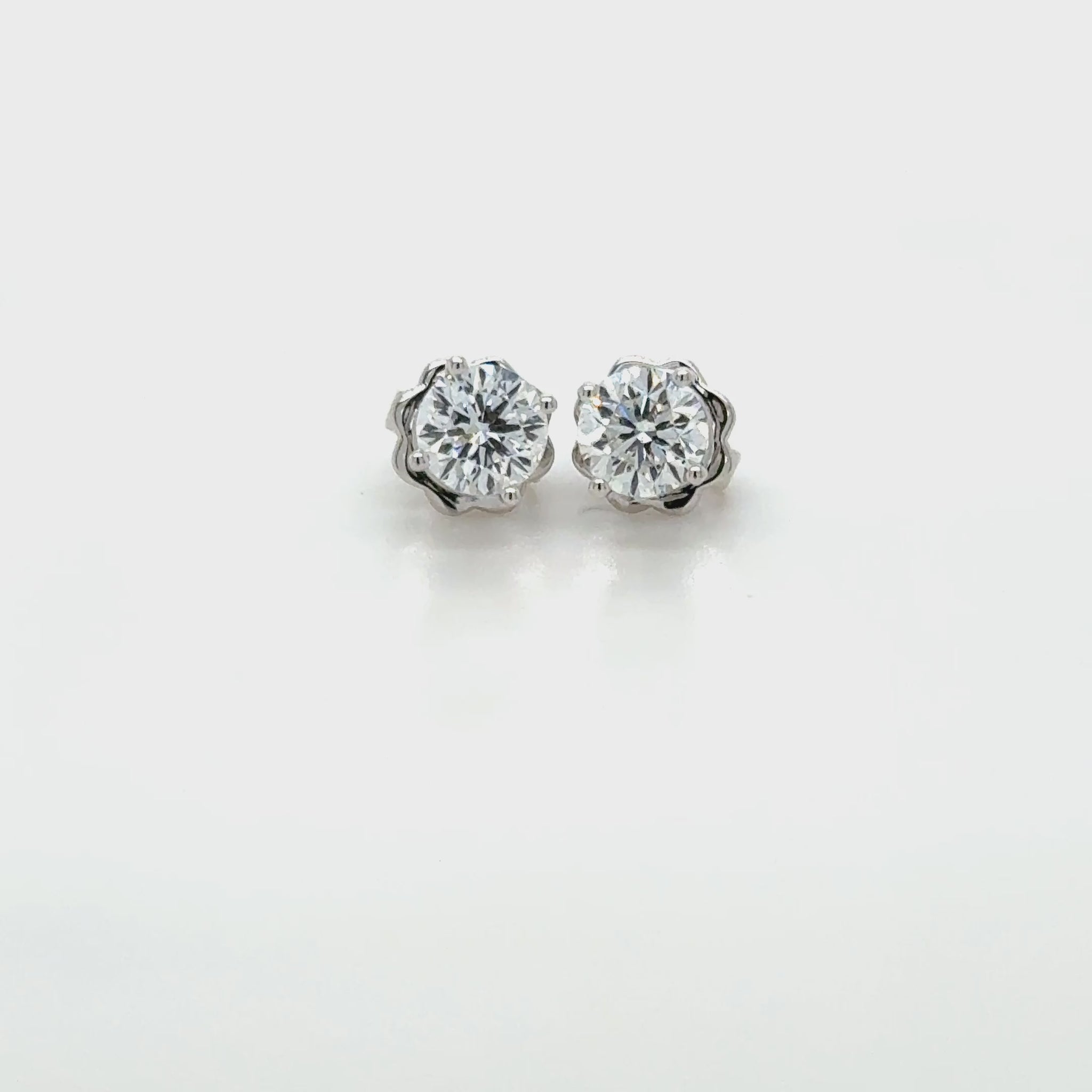 These elegant diamond stud earrings showcase a beautifully matched pair of natural diamonds, expertly set in classic 18K white gold. The earrings feature one diamond weighing approximately 0.52 carat and the other 0.57 carat, offering a combined total diamond weight of 1.09 carats.